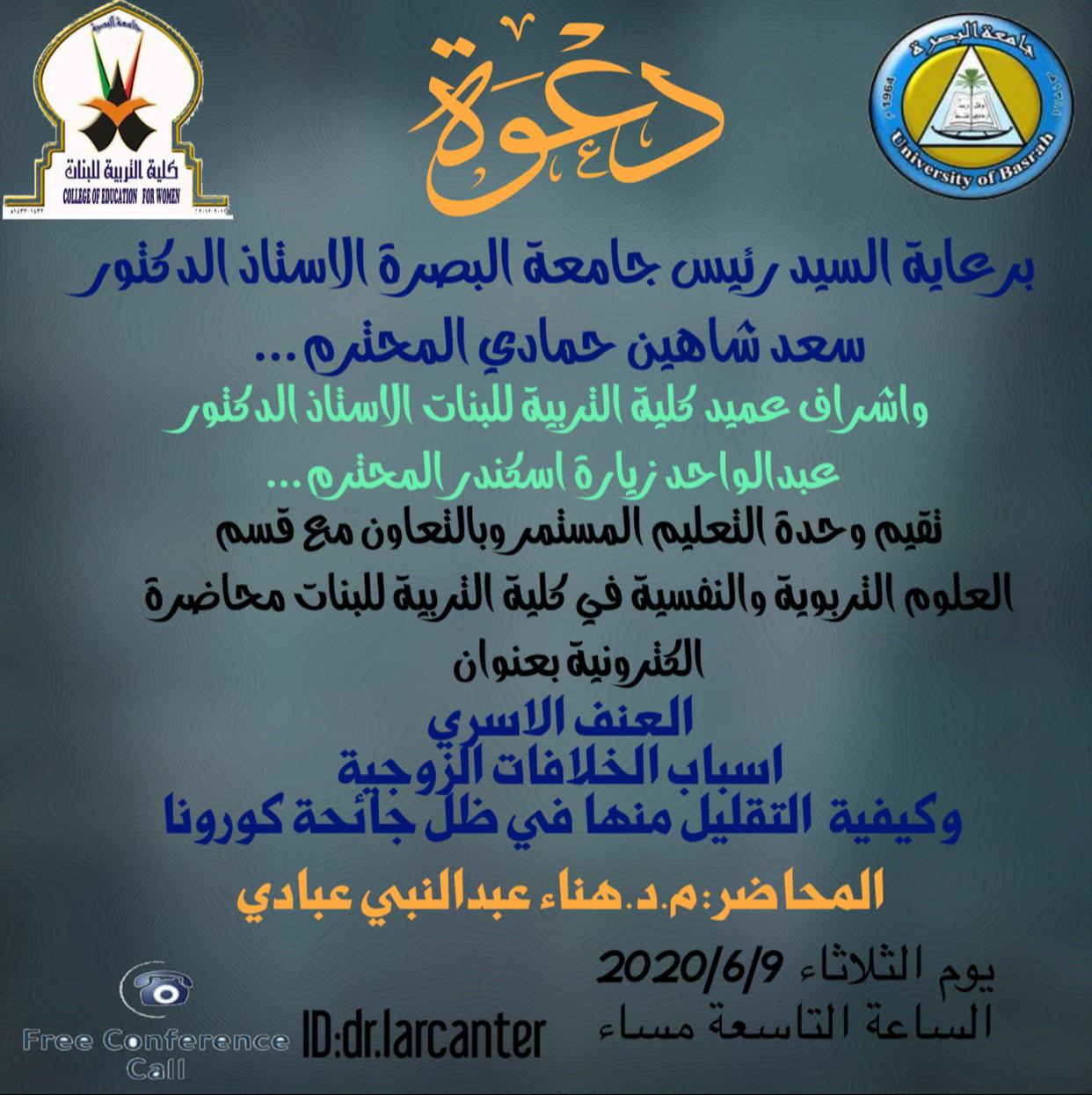 كلية التربية للبنات في جامعة البصرة تقيم محاضرة الكترونية عبر منصة FCC